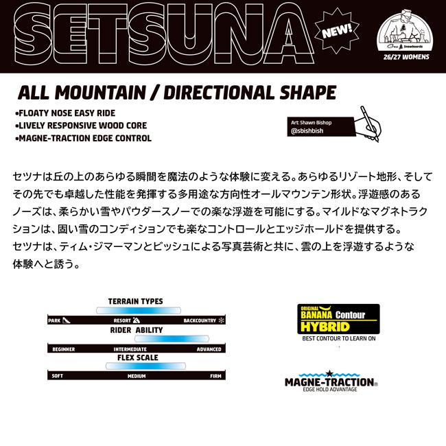 GNU グヌー SETSUNA セツナ スノーボード レディーススノーボード レディース オールマウンテン フリーラン パウダー ディレクショナル MAGNE TRACTION 初心者 エントリー ビギナー 26-27