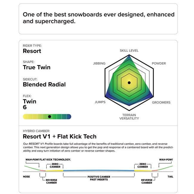 CAPITAの名機D.O.A.をベースに、素材・構造すべてをアップグレードしたハイパフォーマンスモデルSUPER D.O.A.。軽量・高反発・高速滑走性能を高次元で融合し、パークからフリーランまで妥協なく楽しみたいライダーに向けた1本です。正規取扱店GOLGODAが自信を持っておすすめします。
