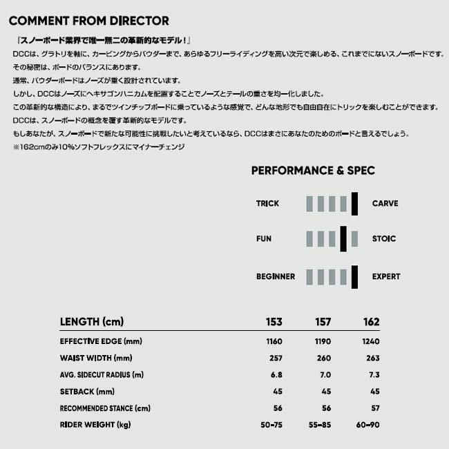そのスノーボード全ての魅力に気付いたスノーボーダーが求める滑りを可能にするエッセンスがこのDCCに詰め込まれています。