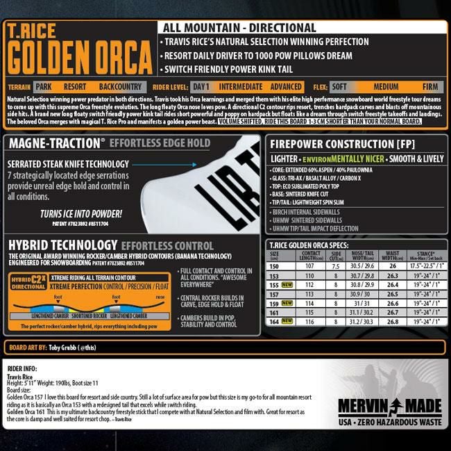 ORCAをベースにマウンテンフリースタイルボードとしてリシェイプされサイドカットやセットバック、ウエストに至るまで全てがORCAと異なります。
