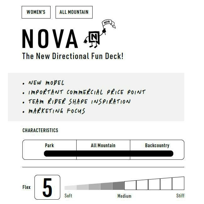 NITRO NOVA(ナイトロ ノヴァ)は、ゲレンデを自由に遊び尽くしたい女性ライダーのためのオールマウンテンクルーザーボードです。