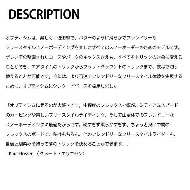 ナイトロ OPTISYM(アプティシム)は、スノーボードの遊び心を極限まで引き出すバタートリック&ロースピード・フリースタイル特化モデル。