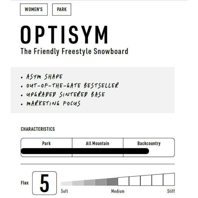 ナイトロ「OPTISYM WOMENS」は、自由な発想で滑りたい女性ライダーに向けたフリースタイルモデル。