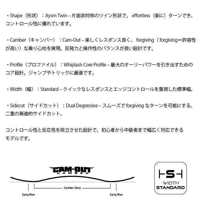 非対称ツイン形状によりスムーズなエッジ切り替えが可能で、低速でも扱いやすく、バタートリックも軽快。