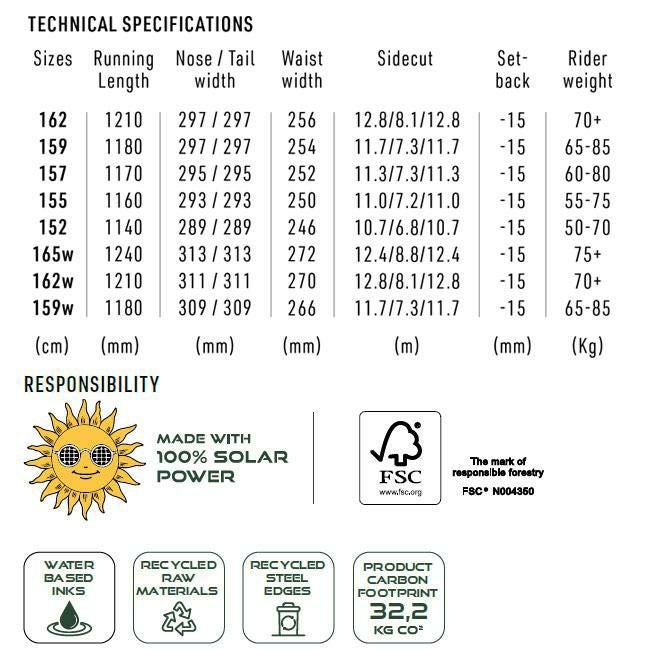 新雪、整地、パーク、すべての地形に対応するディレクショナルツインシェイプに加え、安定性と反発力を兼ね備えたTr?eキャンバー構造を採用。