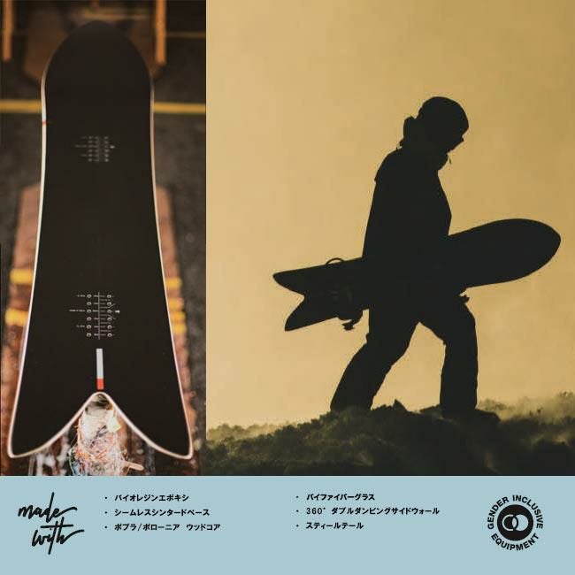 ノーズロッカーの長いセクションとフィッシュテールはパウダーで高い浮力を得ました。ハードなフレックスバランスに設定することによっ