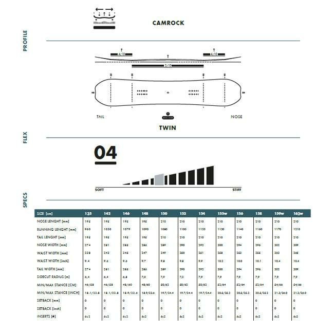 このハイブリッド・シェイプのHappy Placeは、足の間のキャンバーとカーボン・ストリンガーにより、ロッカー・チップの寛容性を
