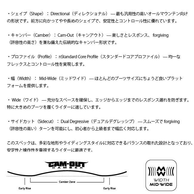ツリーラン、サイドヒット、フリーライドに最適なミディアムフレックスとカムアウトキャンバーが、反応性と安定性を高次元で両立。
