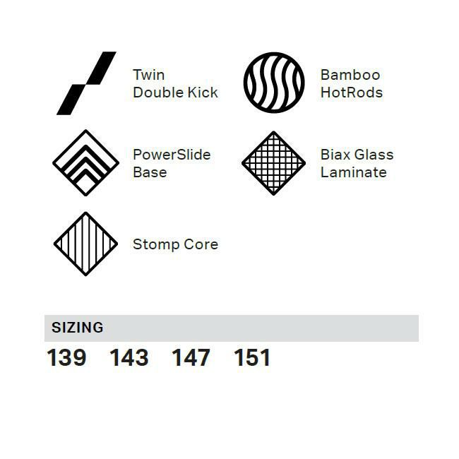 ・フラットロッカープロファイルで引っかかりにくく、ターンの導入も安心