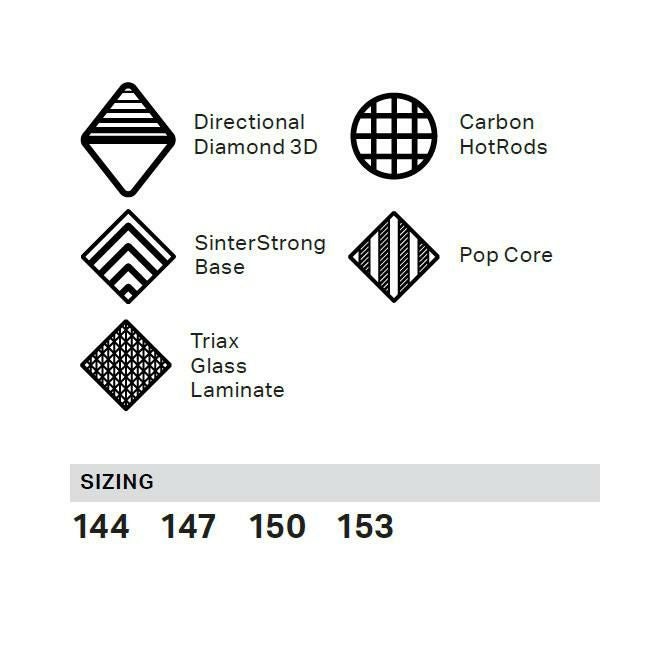 ・Directional Diamond 3Dノーズでスムーズなターン導入&雪面での引っかかりを軽減