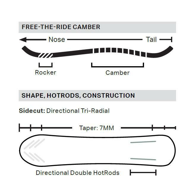・Free-The-Ride Camber構造でノーズの浮力とテールのグリップを両立