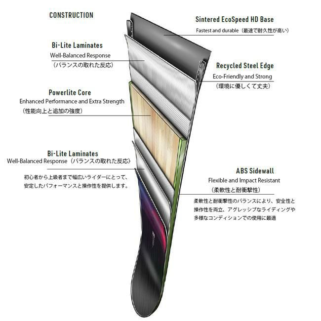 新雪、整地、パーク、すべての地形に対応するディレクショナルツインシェイプに加え、安定性と反発力を兼ね備えたTr?eキャンバー構造を採用。