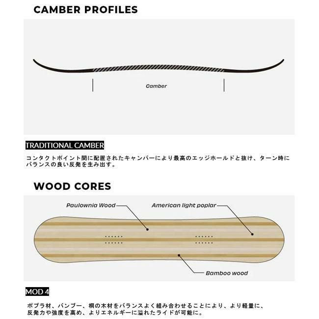 ・MOD 4:ポプラ材、バンブー、桐の木材をバランスよく組み合わせることにより、より軽量に、反発力や強度を高め、よりエネルギーに溢れたライドが可能に。