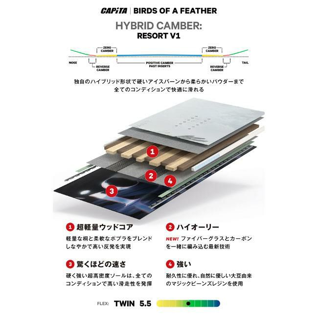 25-26モデル チューンナップ付き 予約 25-26 キャピタ スノーボード CAPITA BIRDS OF A FEATHER バード オブ フェザー レディース ハイブリッドキャンバー スノボ パーク ジブ フリーラン