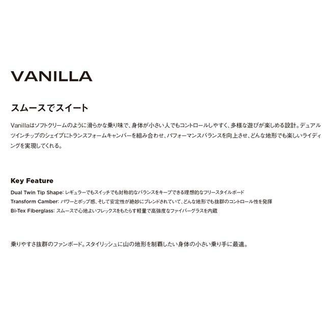 SIMS SNOWBOARD 2025-2026モデル「VANILLA(バニラ)」は、軽量で操作性の高いデュアルツインチップ形状を採用。Transform Camberが安定感と取り回しの良さを両立し、女性や小柄なライダーにも扱いやすい設計です。パーク、カービング、ジブなど幅広いライディングスタイルで活躍する万能モデルです。