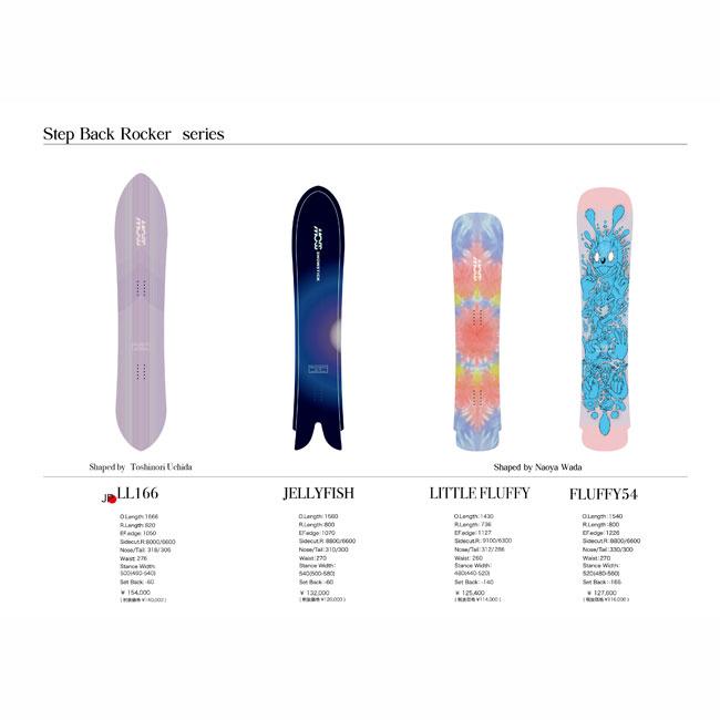 LLは、ステップバックロッカーでサーフライクに遊べ、ワイドボディーとピンテールでパウダーでの浮力操作性も抜群