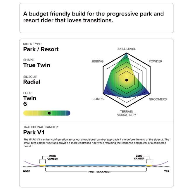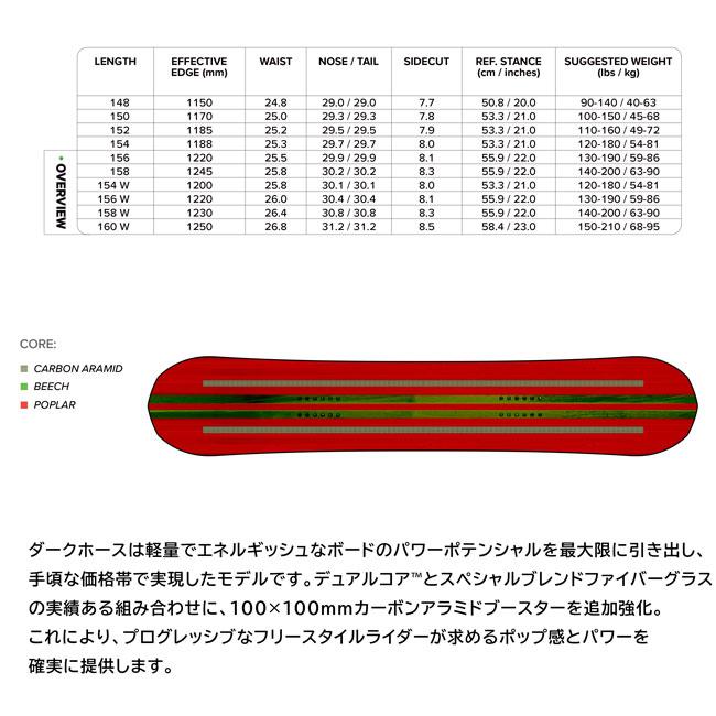 ハーフパイプなどのトリックやジャンプを主に楽しむ人向けの板です。軽量で遊びやすいフレックスが特徴です。