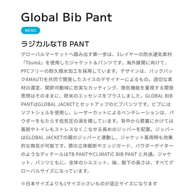 GLOBAL BIB PANTはGLOBAL JACKETとセットアップのビブパンツです。