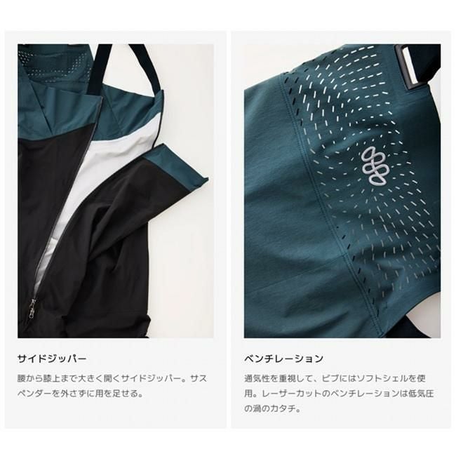 ビブにはソフトシェルを使用し、レーザーカットによるベンチレーションは、パウダーをもたらす低気圧の渦を模しています。