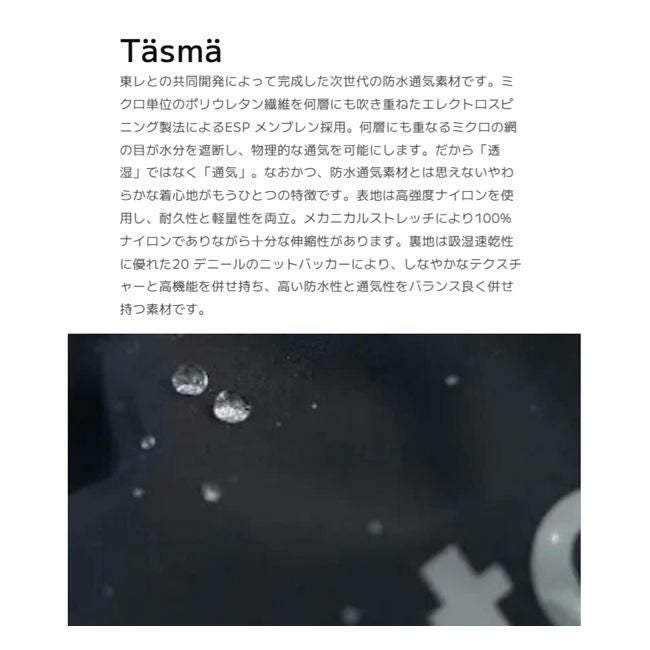 グローバルマーケットへ踏み出す第一歩は、3レイヤーの防水通気素材「Tasma」を使用したパンツです。