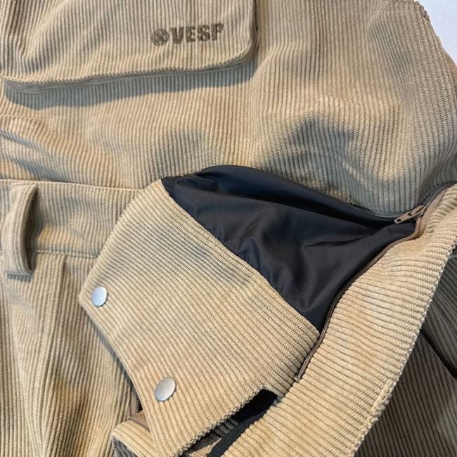 25-26モデル 人気のワイドビブパンツにコーデュロイ素材タイプ登場 べスプ ビブパンツ VESP Twoway Corduroy Wide Jogger Bib Cargo Pants VPMP1065C 25-26 スノーボードウェア ウェアー メンズ レディース 冬