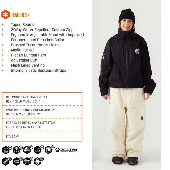 26-27モデル パークで映えるルーズシルエット 予約 サーティーツー サーティーツー THIRTYTWO JIB JACKET ジブ ジャケット レディース 26-27 スノーボードウェア 防水透湿 15K ルーズフィット 正規品
