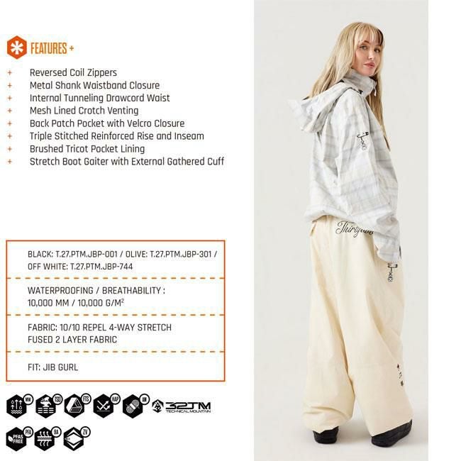 26-27モデル スタイル重視のレディースモデル 予約 サーティーツー THIRTYTWO JIB PANT ジブ パンツ レディース 26-27 スノーボードウェア 防水透湿 15K ルーズフィット 正規品