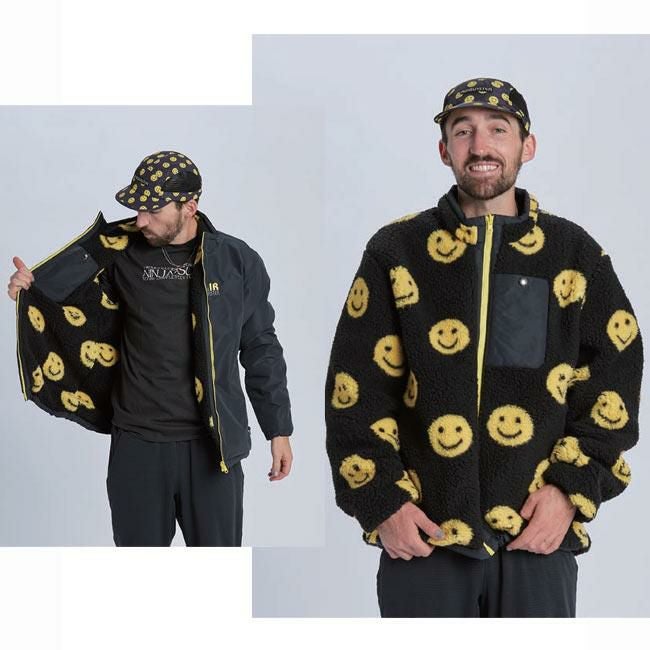 シェルカラーは控えめにシェルパフリースのプリントは裏地としてポップに、そして裏返せばワイルドに。