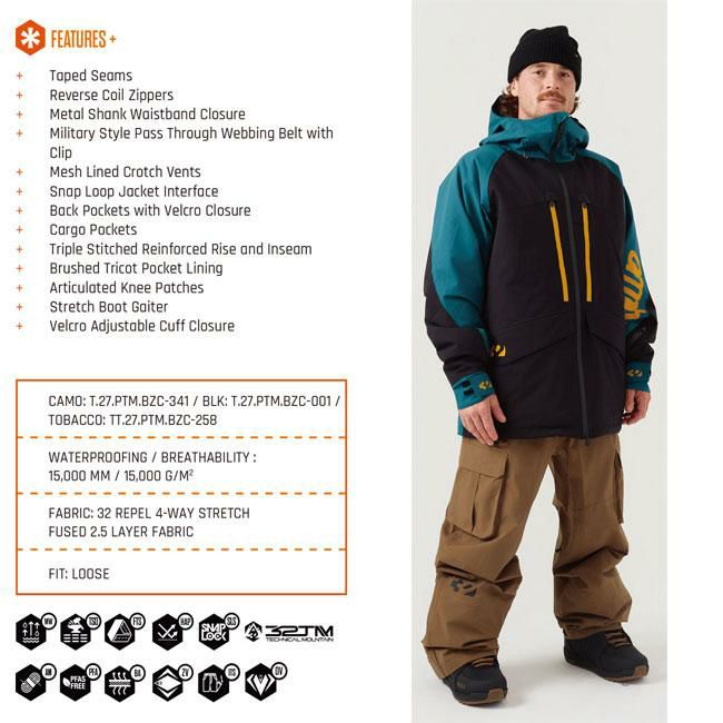 BLAHZAY CARGO PANTは、THIRTYTWOらしいストリート感と本格的なスノーボード機能を融合させたカーゴパンツ。15K防水透湿性能を備えた2.5レイヤー構造と32 REPEL加工により、雪や湿気をしっかりブロック。ルーズフィットならではの動きやすさで、パークからフリーライドまで幅広く対応します。