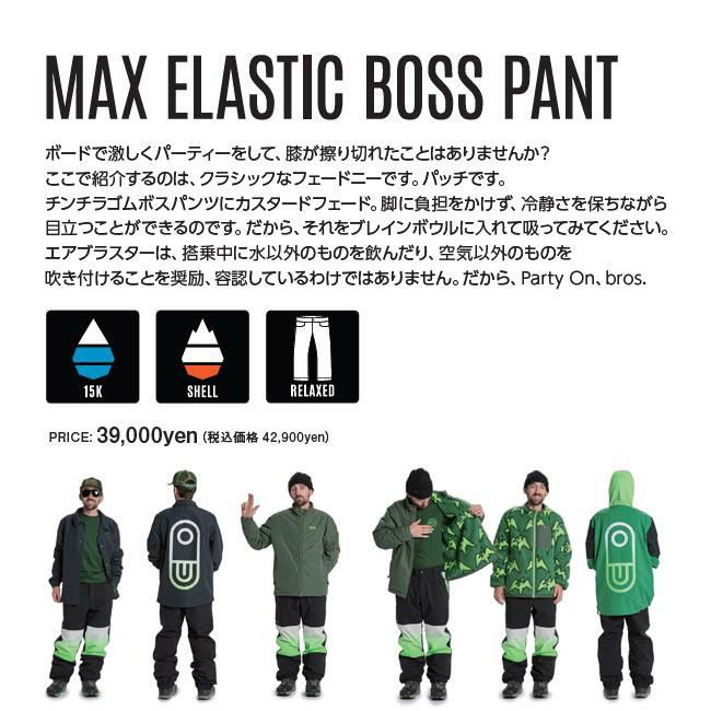 23-24モデル AIRBLASTER GLACIER SERIES エアブラスター AIRBLASTER MAX Elastic Boss Pant 23-24 マックス・ワービントン