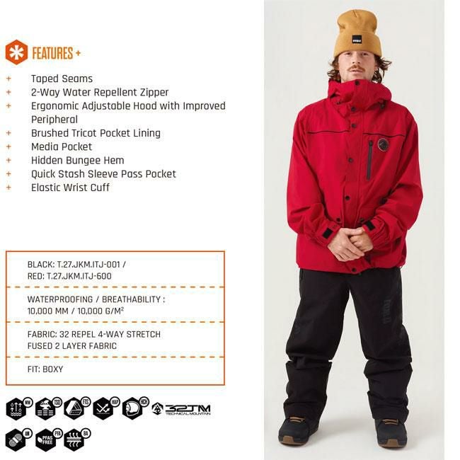 26-27モデル シンプルを極めた万能ジャケット 予約 サーティーツー THIRTYTWO INTROVERT JACKET イントロバート ジャケット メンズ 26-27 スノーボードウェア 防水透湿 15K リラックスフィット 正規品