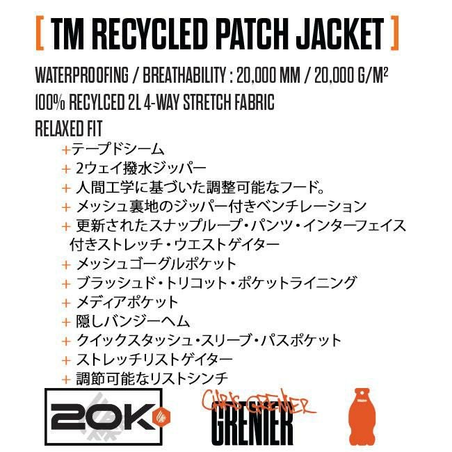 THIRTYTWO サーティーツー TM RECYCLED PATCH JACKET スノーボードウェア スノージャケット スノーウェア メンズ ジャケット リサイクル素材 ハイスペックモデル パッチデザイン 高耐水圧 高透湿 ストレッチ素材 サステナブル エコ仕様 ストリートスタイル 25-26モデル