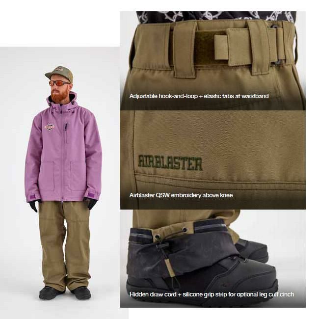 頑丈な二本針ステッチと重要な縫い目にシームテープを施したこの 10K 防水パンツは、屋外での「仕事」にも耐えられるように作られています。