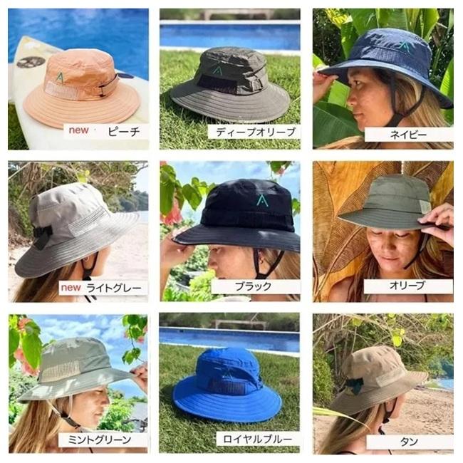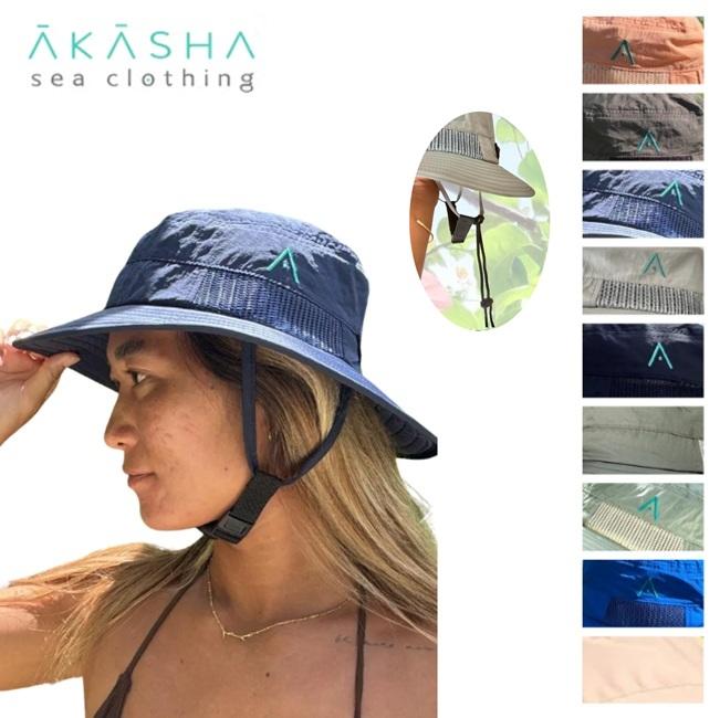 サーフハット AKASHA Bucket Surf Hat アカシャ サーフバケットハット 無地 リーシュ(流れ止め付き)視界を遮らない 日焼け防止対策 サーフィン 帽子 春 夏 秋 冬