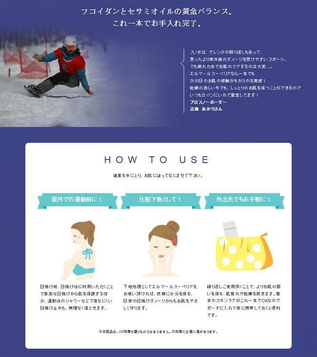 ●エルマール多機能保湿液はヒアルロン酸、コラーゲンなどに続きお肌への有効成分として注目を集めるフコイダンを贅沢にふんだんに使った全く新しい保湿液。