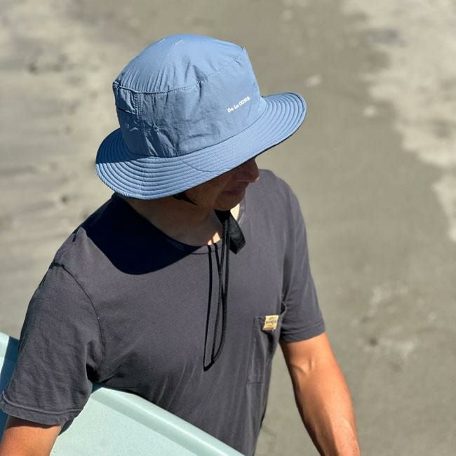 海でも街でも快適に。機能性とデザイン性を兼ね備えたDe La COSTA Surf Hatは、サーフィンをはじめとするアクティブシーンに最適なUVケア対応ハットです。