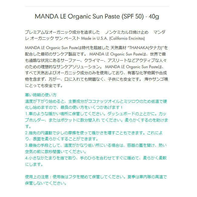 ノンケミカル日焼け止め マンダ MANDA LE Organic Sun Paste SPF 50 40g オーガニック サン ペースト