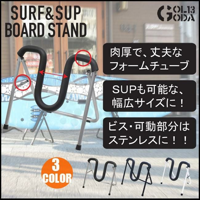 ショートからロング、SUPまで対応。スポンジカバーでボードへの傷を防ぎ、簡易ロックでどちらにも開く事が可能、滑り止めつき。2脚をまとめるパーツ「れんけつ君」もついてます。 (2脚で1setとなります)