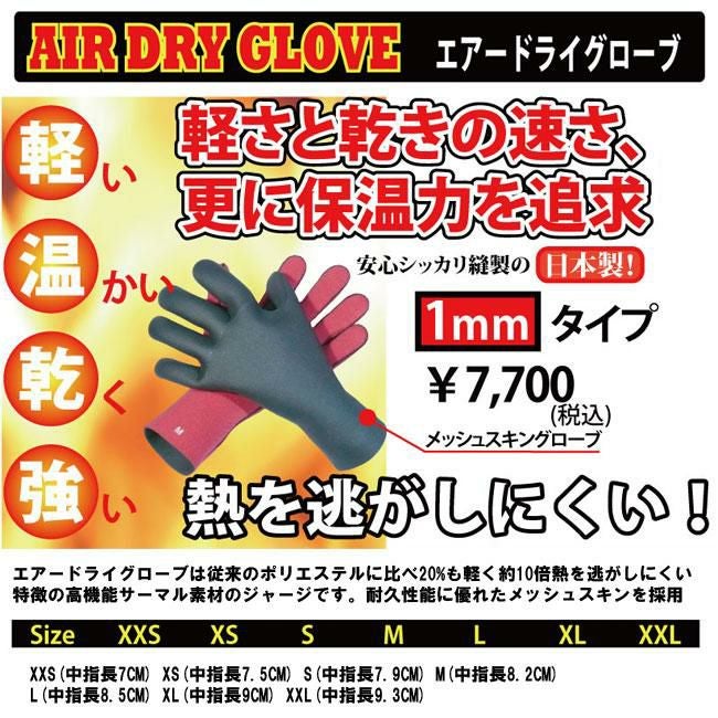軽い!暖かい!強い! サーフィン用グローブ EXTRA AIR DRY GLOVE エアードライ 1mm 保温性抜群素材 冬用サーフグローブ グローブ