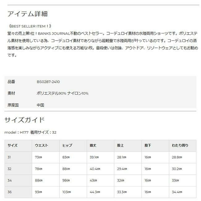 堂々の売上第1位!BANKS JOURNAL不動のベストセラー。コーデュロイ素材の水陸両用ショーツです。