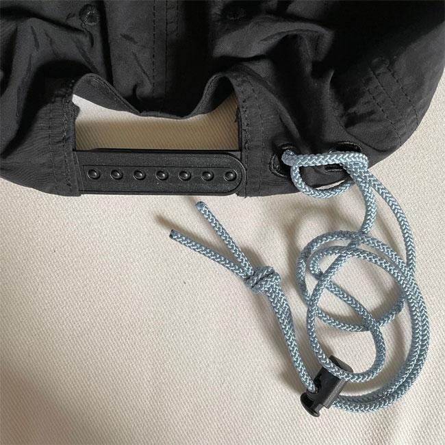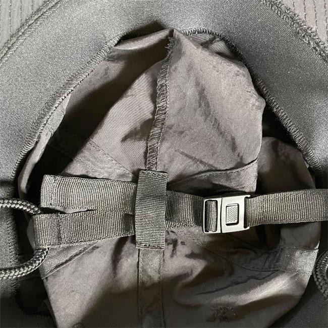通常のCAPより、ツバの長さを短めにし、素材も薄いものを使うことにより、水の抵抗が少なくなります。