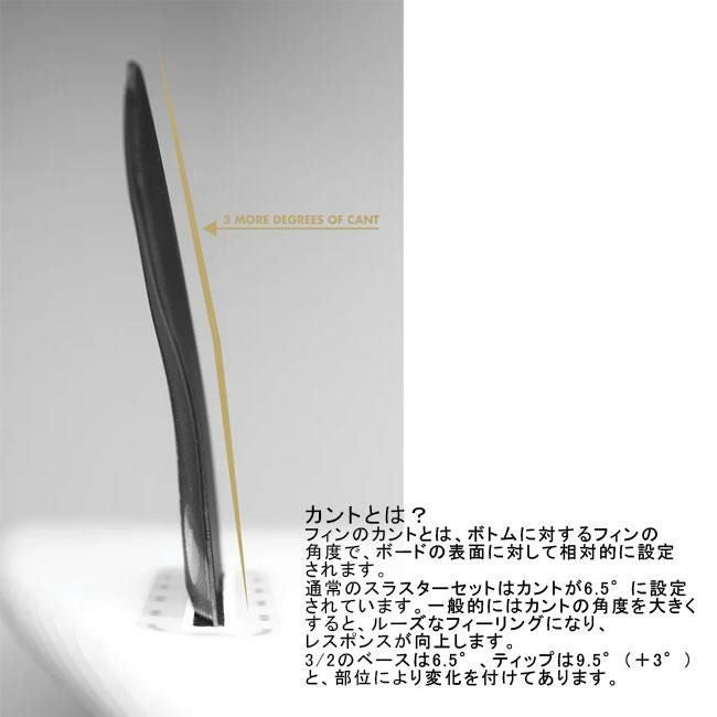 ベースからティップにかけてのコンケーブ状になった面と、フィン上半分の「ねじれ」の相乗効果により、ライン取りの際にユニークでポジティブなグリップ感を提供してくれます。特に小さな波では、なめらかにスピードに乗って行く事を明白に感じられるでしょう。