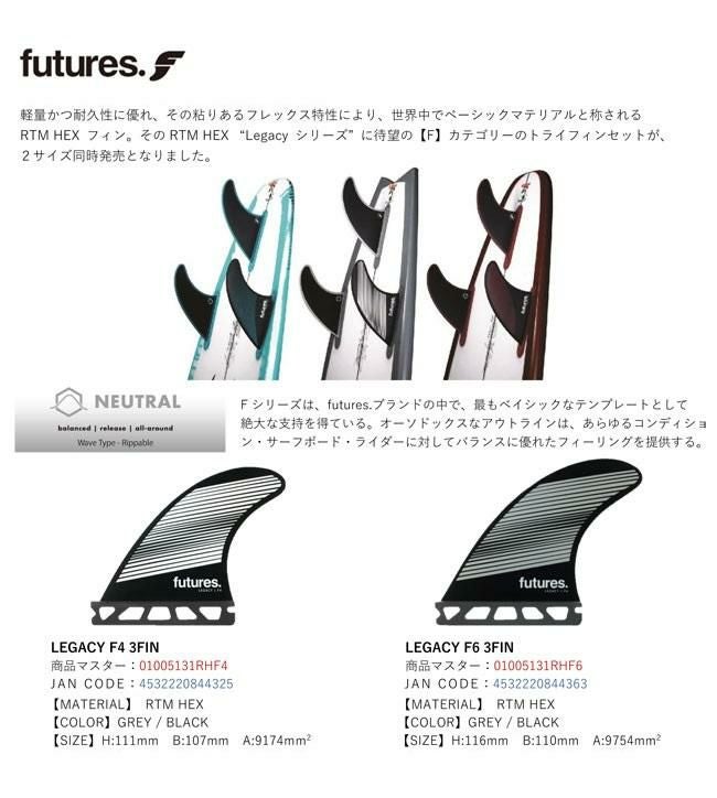 RTM HEX フィン。そのRTM HEX “Legacy シリーズ” に待望の【F】カテゴリーのトライフィンセットが、