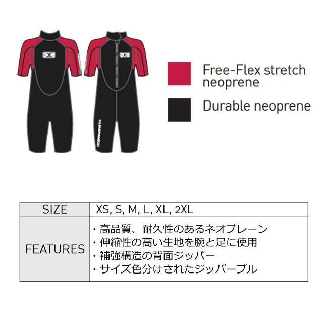 スクール用のウェットスーツとして開発された、強度を重視した製品、ジッパーエンドの壊れ防止やサイズ表記など便利で使い勝手がよくできています