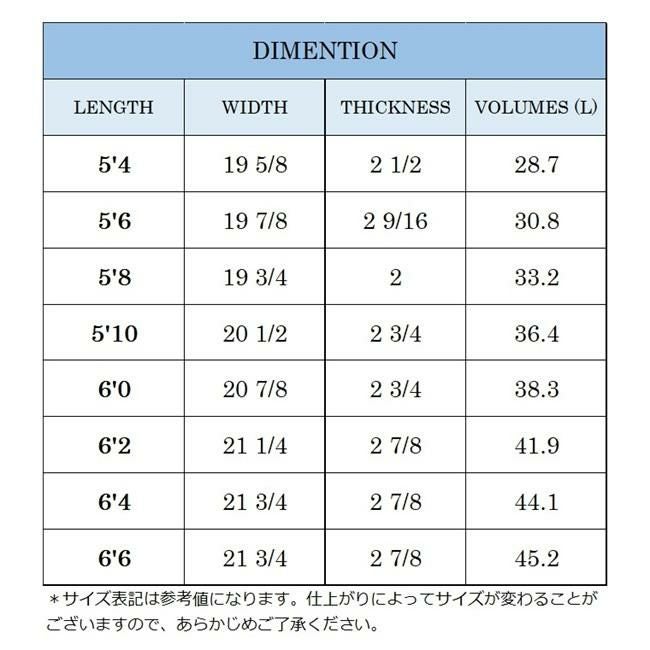 ●6'0 182.8cm x 19 7/8 53cm x 2 9/16 7cm 38.3L