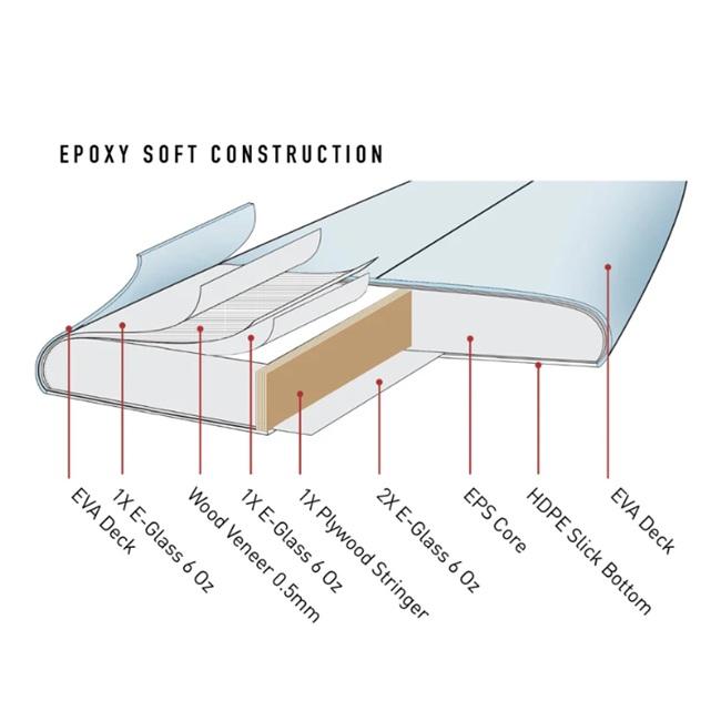 O&E とのコラボレーションによるエポキシ製ソフトボードは、正確なターン、素早いトリミング、至高のノーズライディングを可能にするモダンなロッカーを備えています。