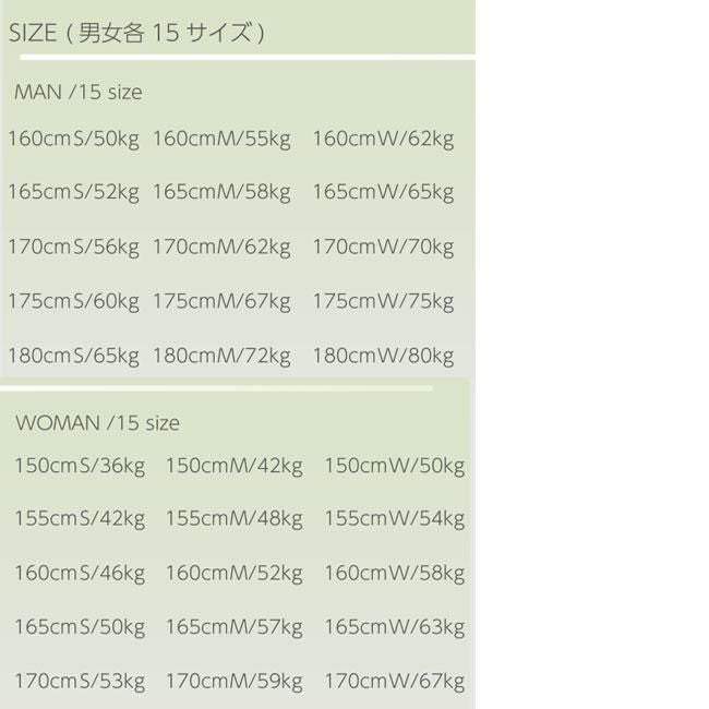 細身、太身が選べるメンズ15種類、ウィメンズ15種類の既製サイズ
