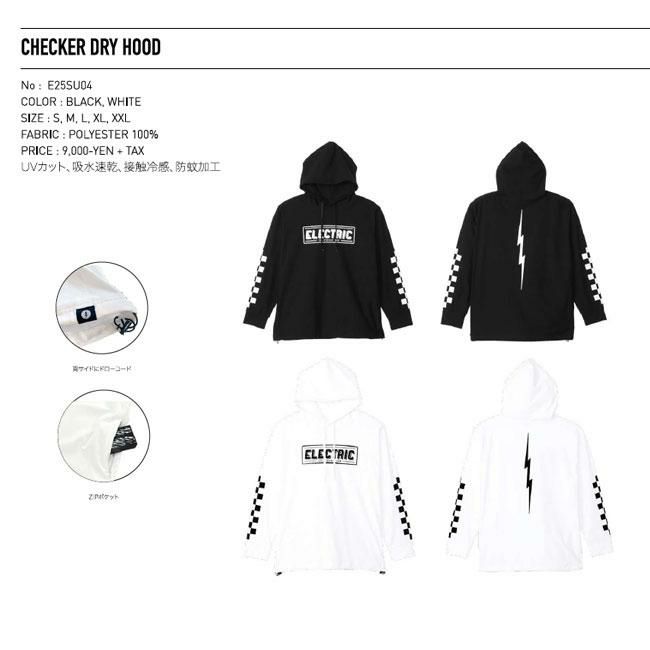 UVカット 吸湿速乾 接触冷感 防蚊加工 UV カット ドライ素材 ELECTRIC エレクトリック CHECKER DRY HOOD フード ロンティー 長袖 フィッシング 釣り サーフィン ラッシュガード 春夏