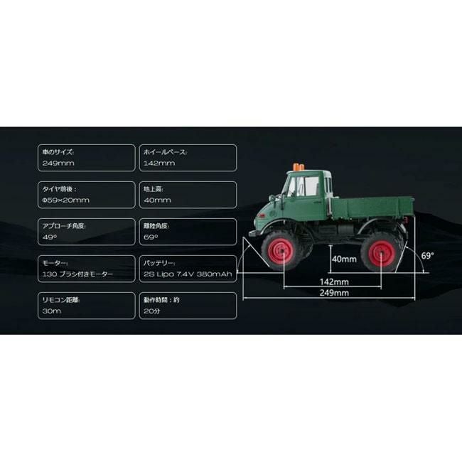Daimler-Benz AG の認可を受け、FMS によって製造されたこの 1/24 Unimog 421 モデルカーは、FCX24 高性能クライミング シャーシと 2 速トランスミッション設計を特徴とし、高水準の外観シミュレーションとパフォーマンスを維持しています。