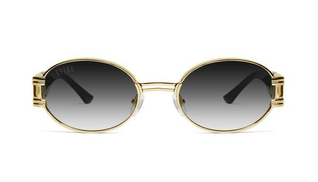 人気のラウンドシェイプのフレームに24金コートが施された金属パーツでデザインされたテンプルは、